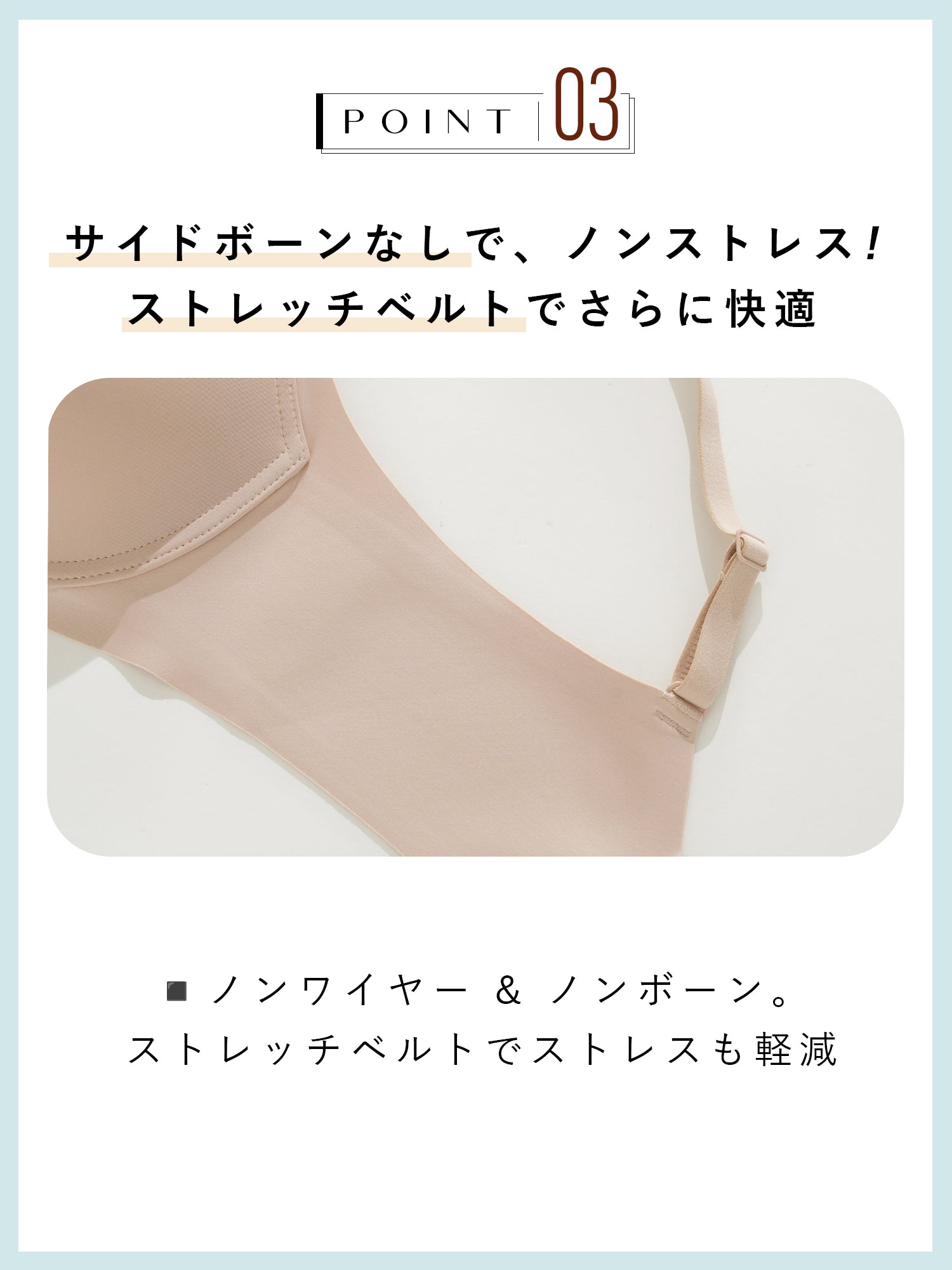 仕様 | ワイヤー:なし ホック:4段3列 肩紐:取り外し不可 |