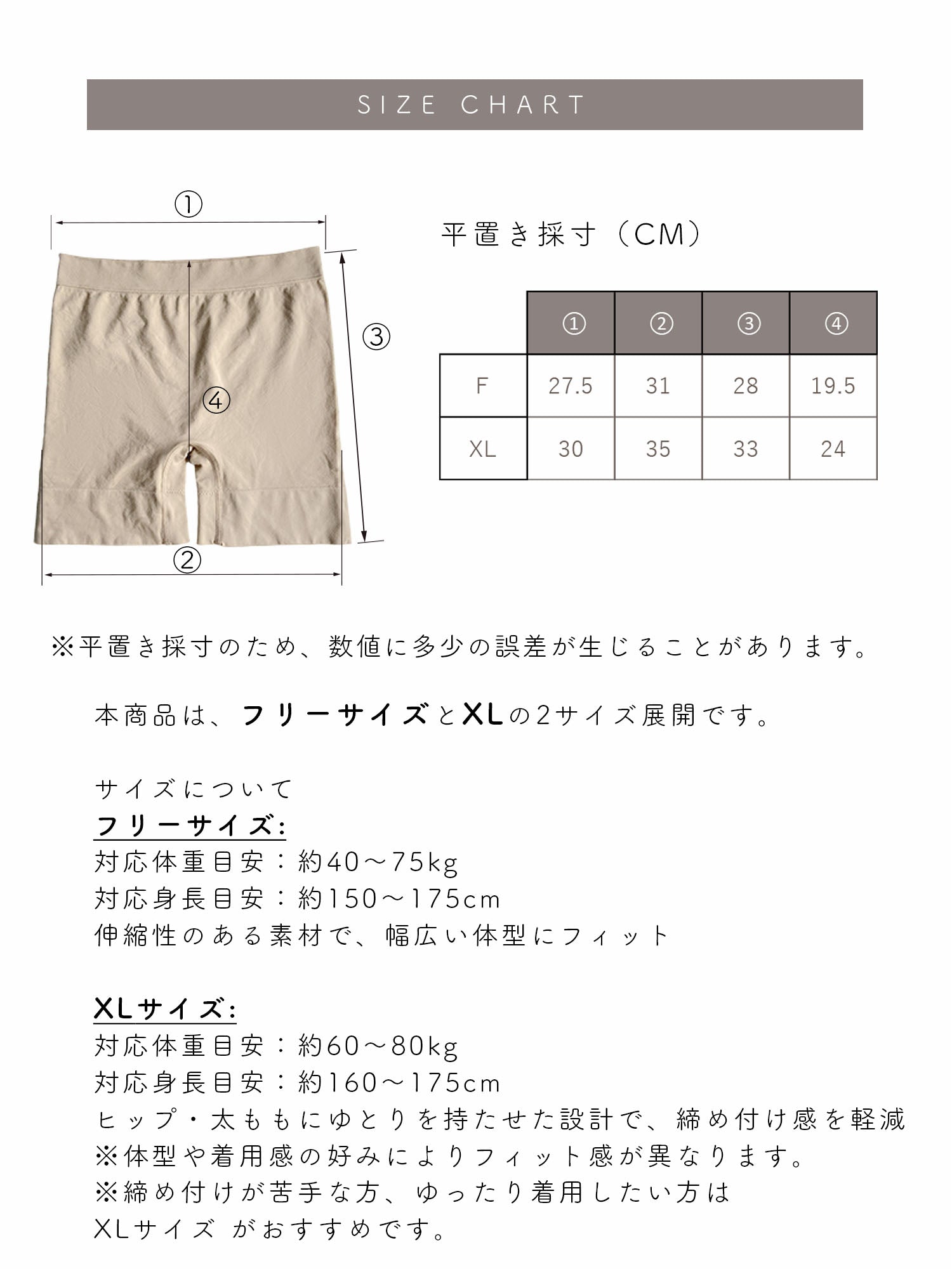 ※締め付けが苦手な方、ゆったり着用したい方は XLサイズ がおすすめです。