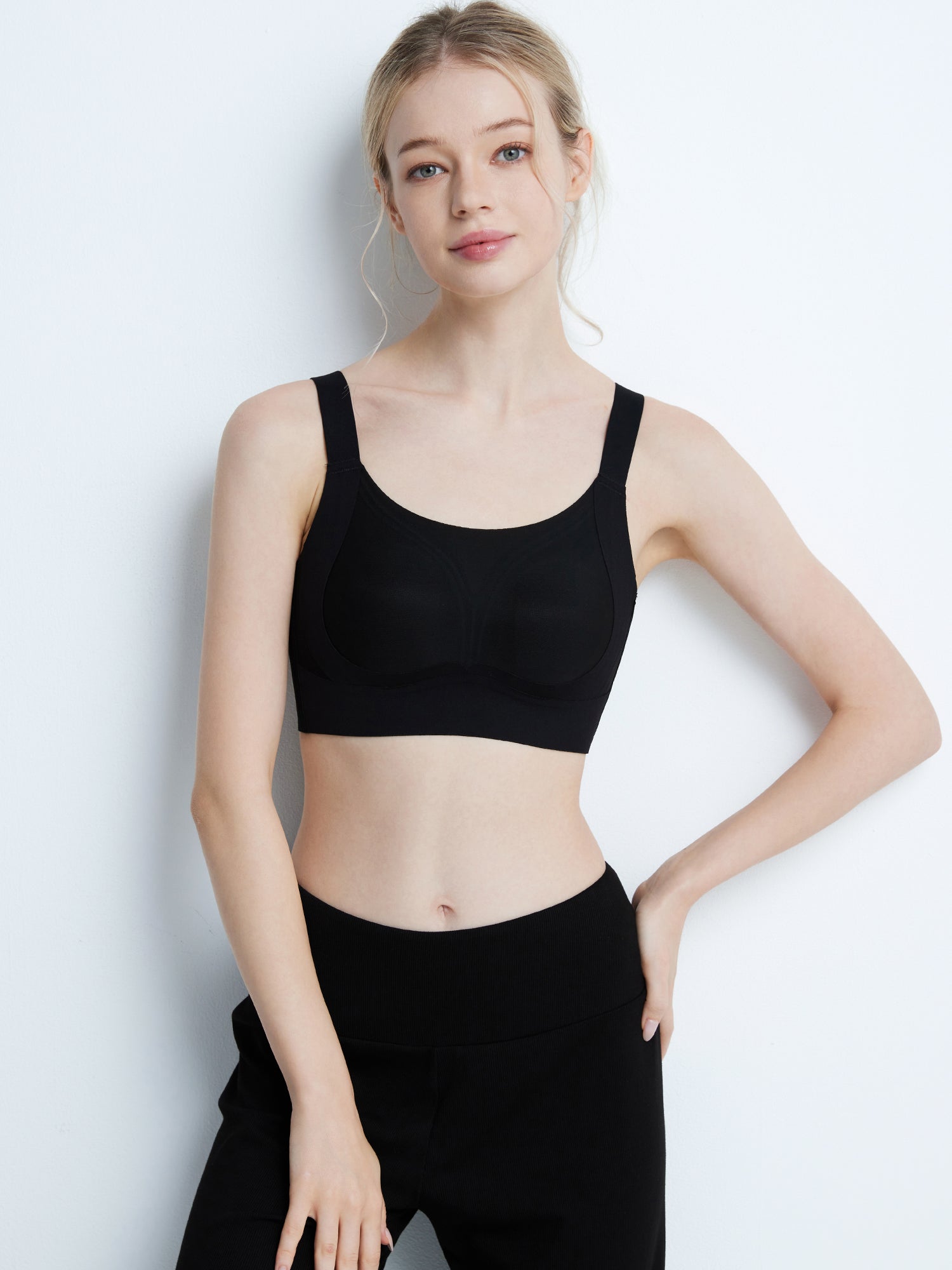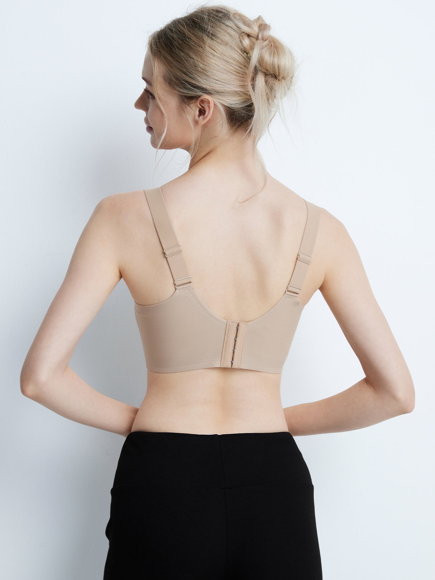 ◆ポイントカバーで軽く快適。うさぎ耳型カップがやさしくフィットして、自然なラインをキープします。 太めのストラップが肩への負担を軽減し、安定感も抜群。 サイドボーンを強化することで脇肉をしっかり収め、すっきりとしたシルエットに。 バージスラインを広めにとり、伸縮性のあるアンダーがしっかりバストを持ち上げます。 さらに、サイドとアンダーが一体となったサポート設計で、全体を内側に寄せて美しいバストラインへ。