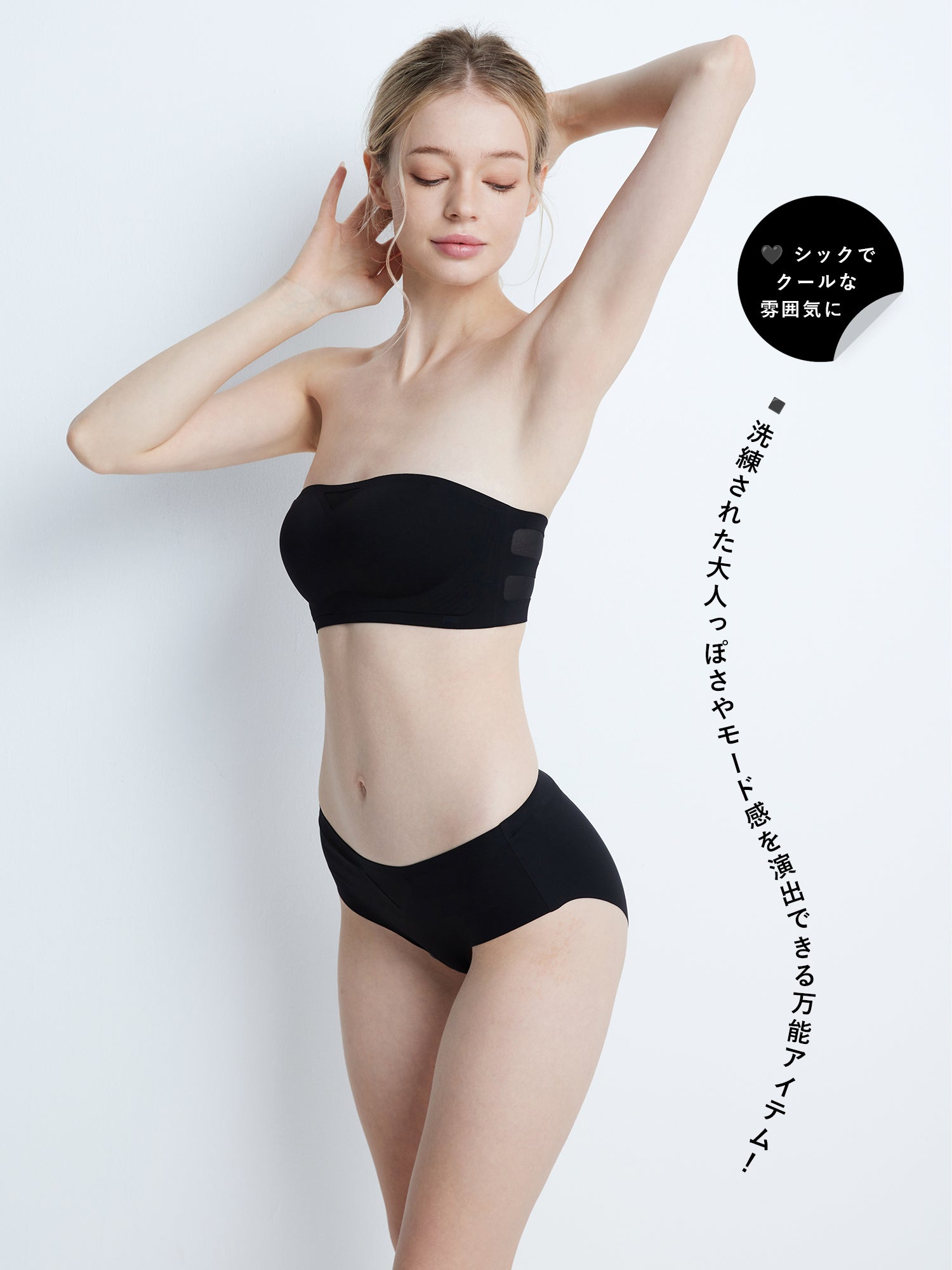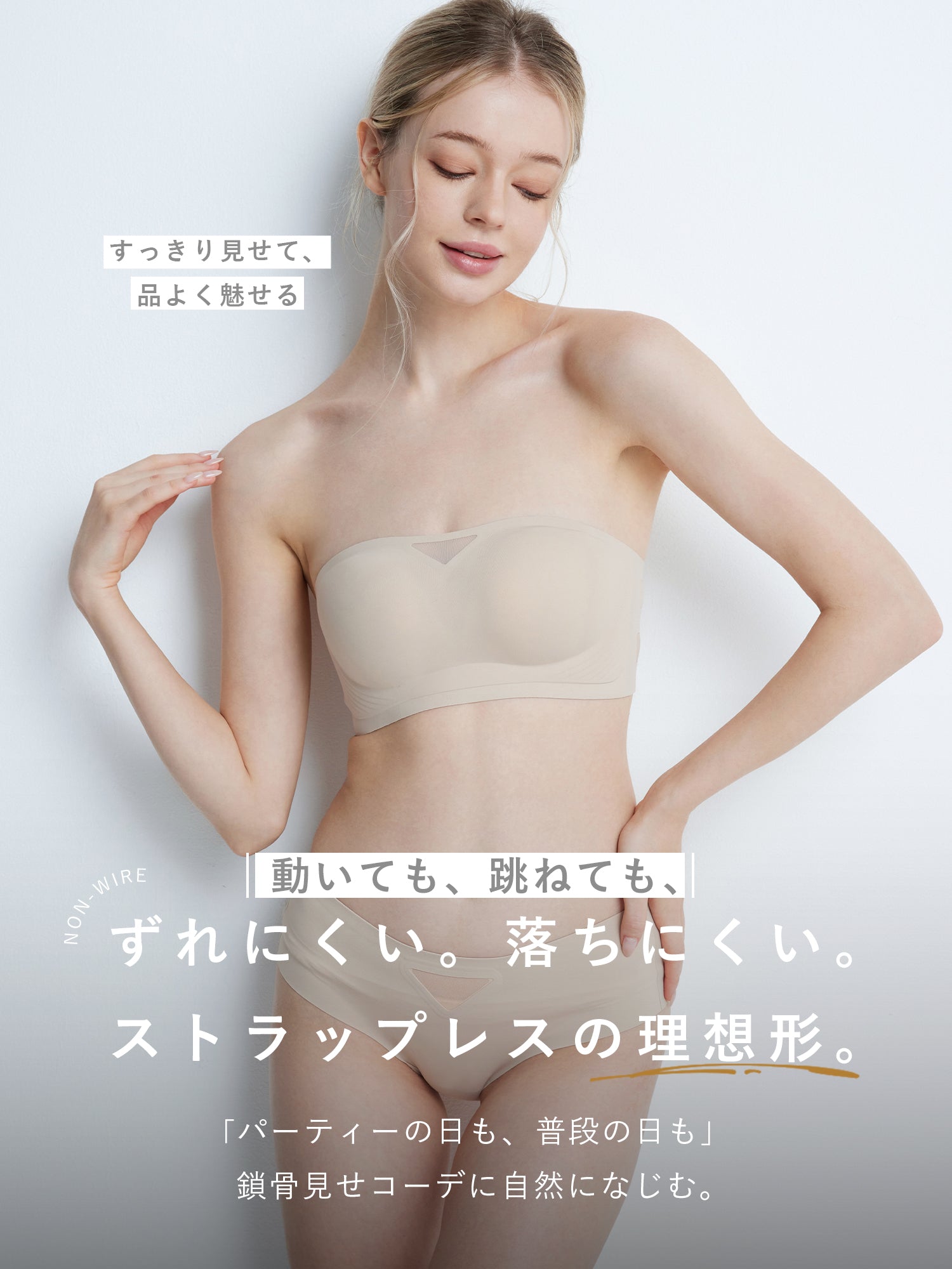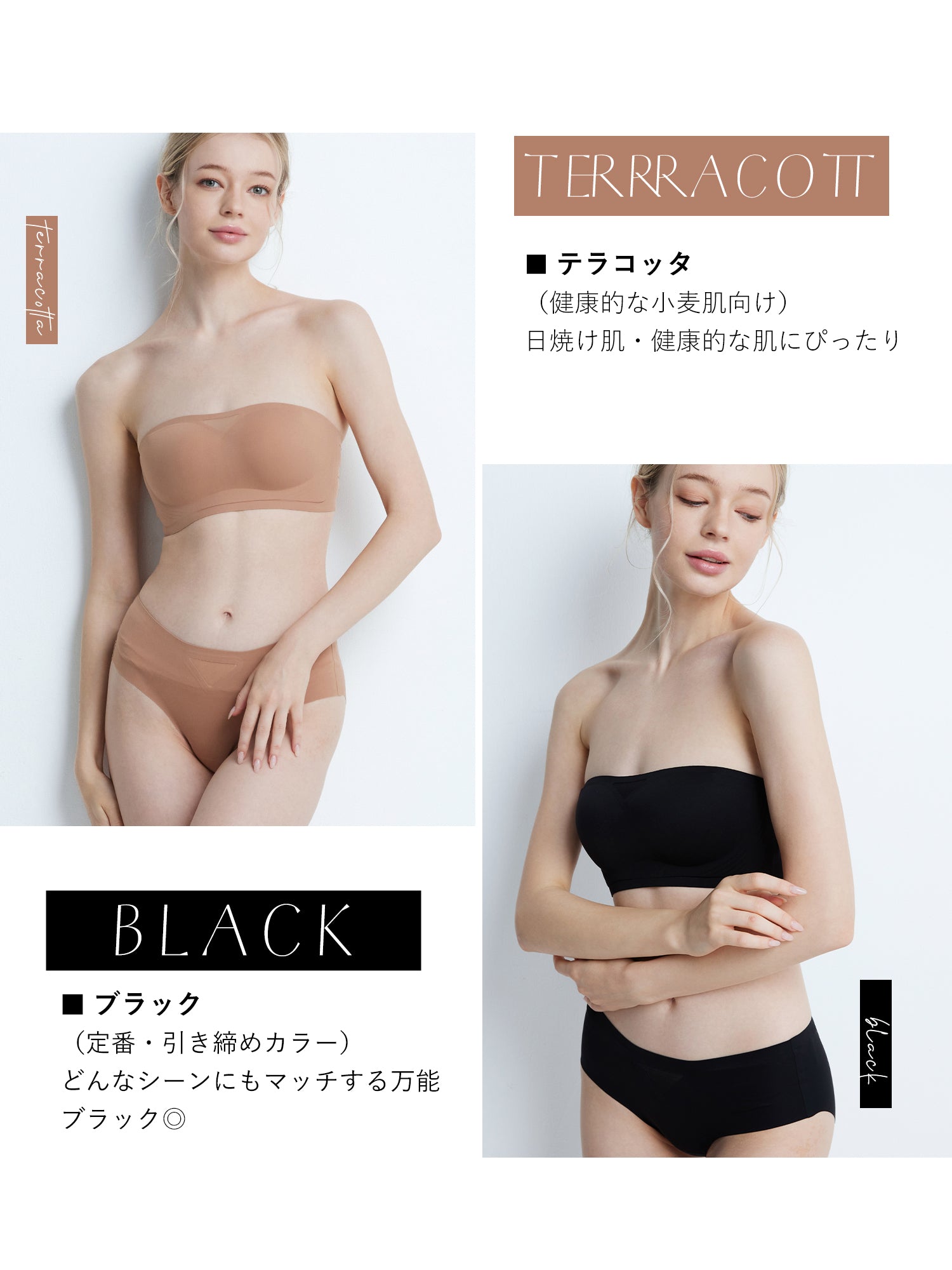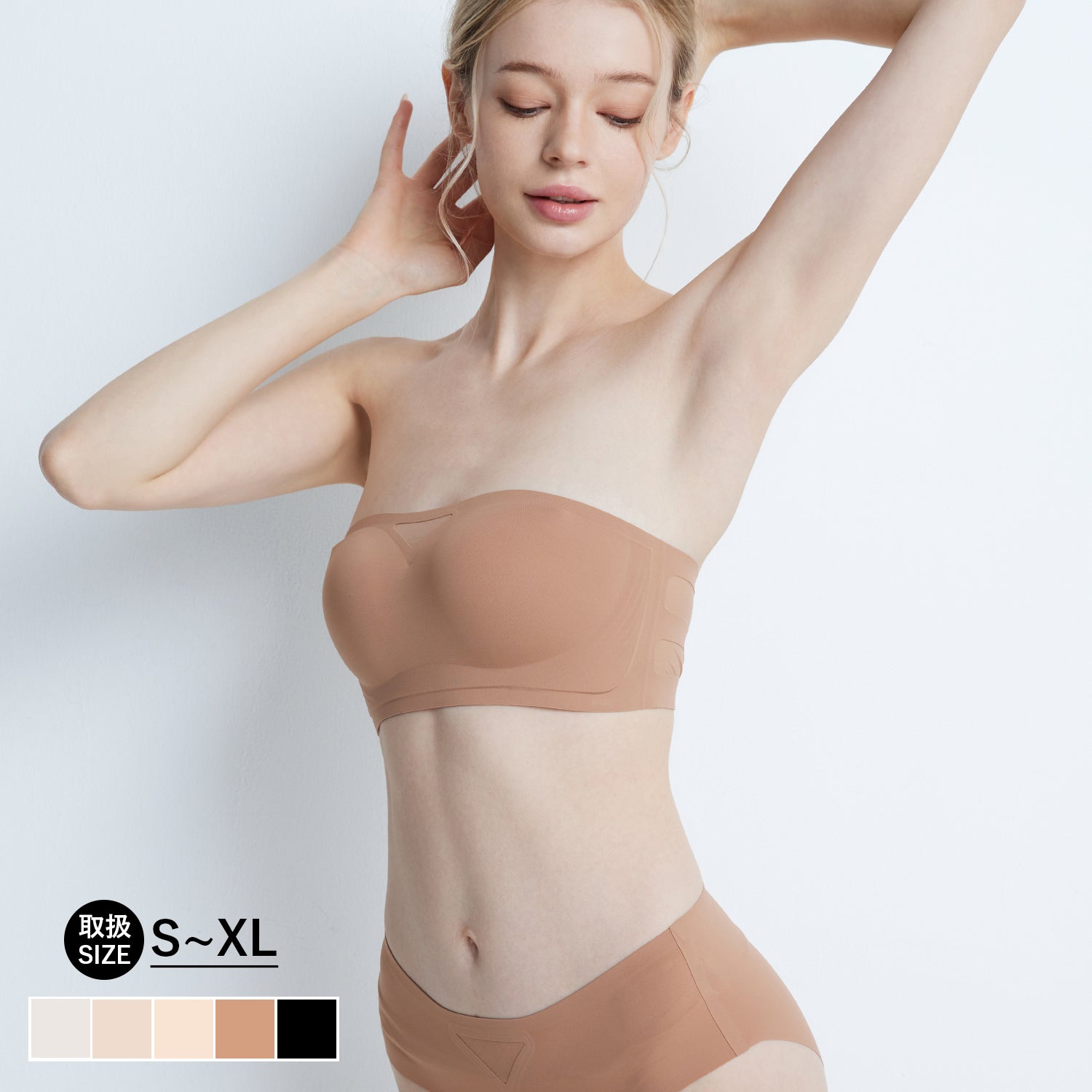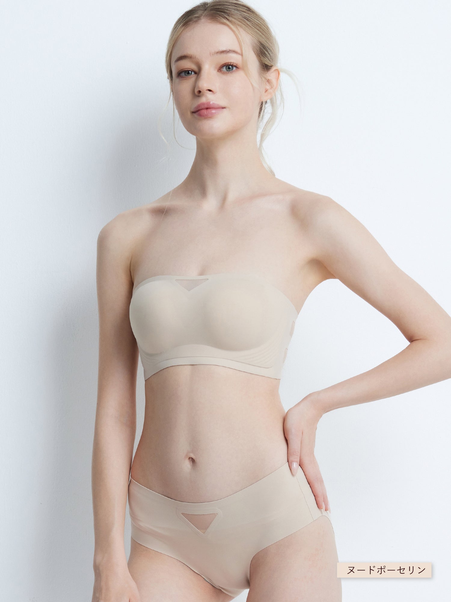 Softcute ストラップレスブラ ブラ&ショーツセット チューブトップ ずれない