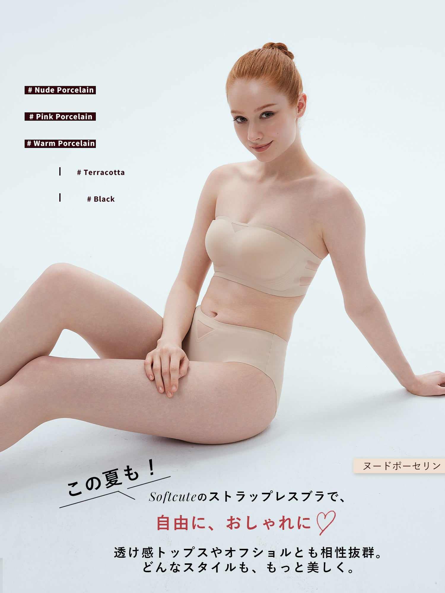 Softcute ストラップレスブラ ブラトップ ノンワイヤーブラ セット