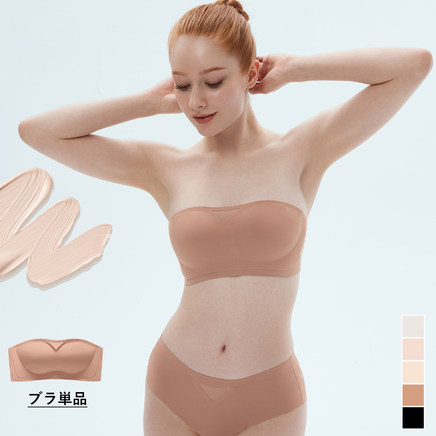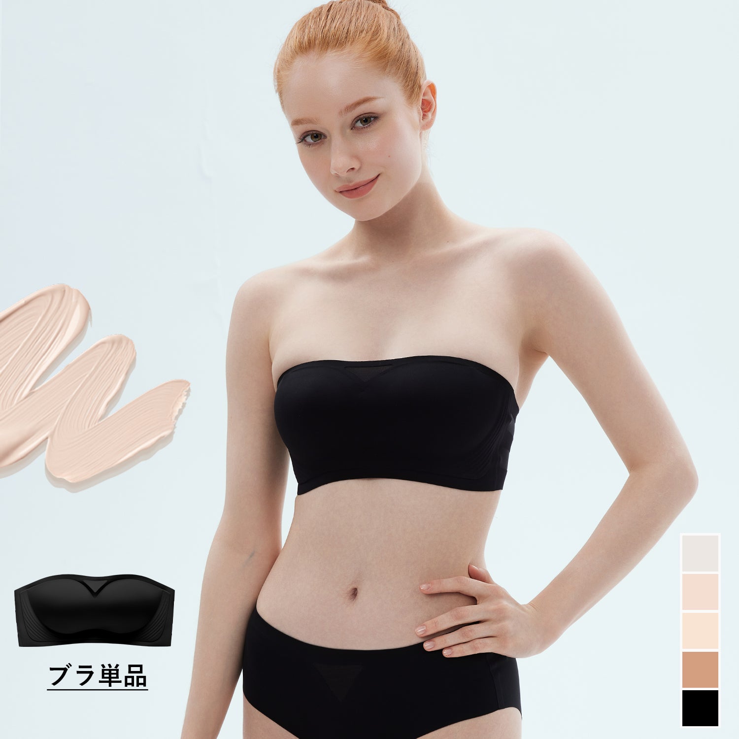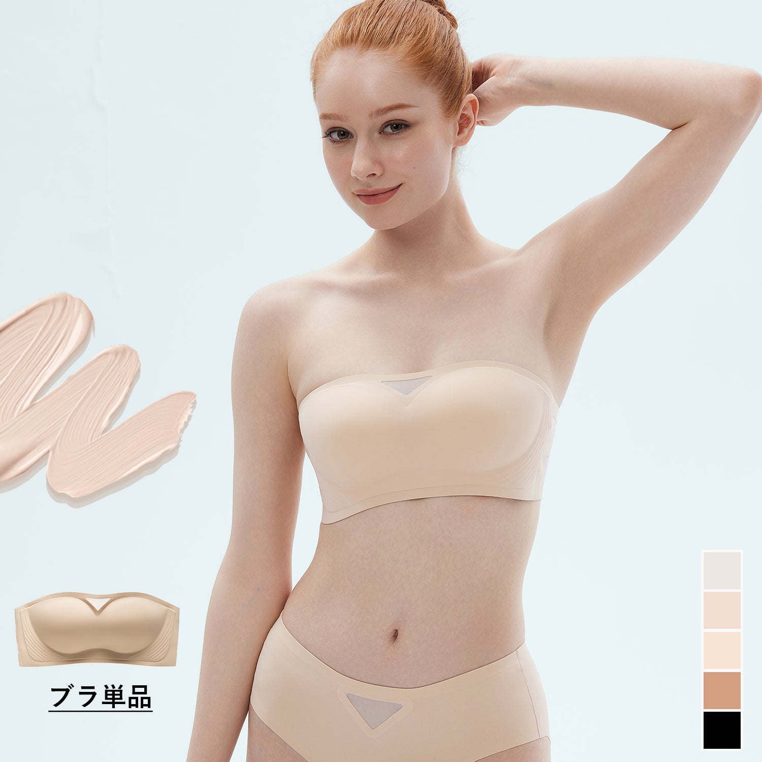 Softcute ストラップレスブラ ブラ&ショーツセット チューブトップ ずれない