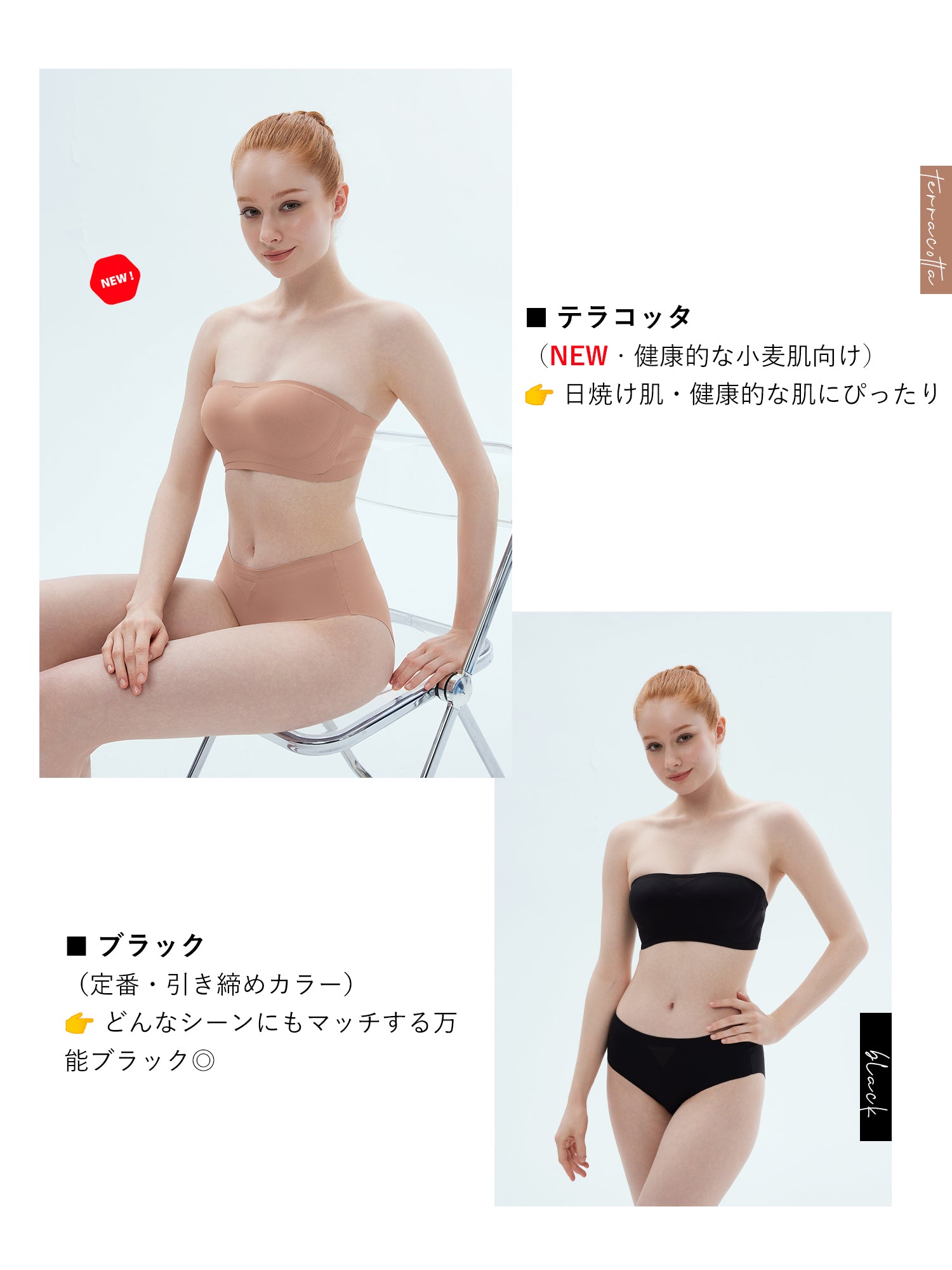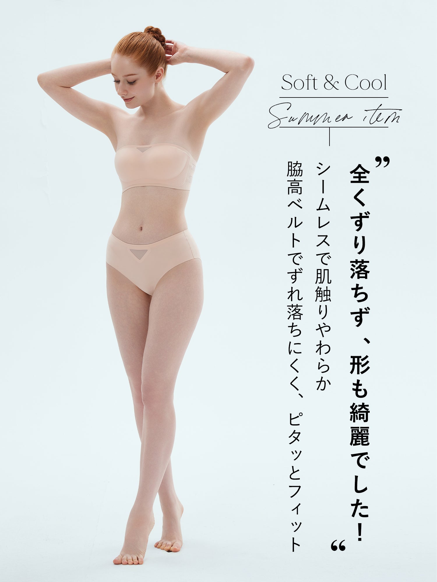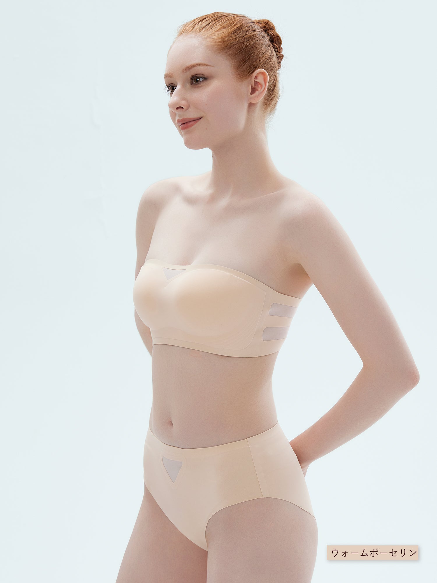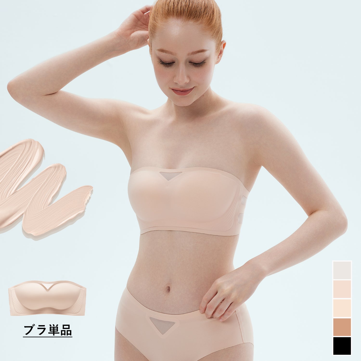 Softcute ストラップレスブラ ブラ&ショーツセット チューブトップ ずれない